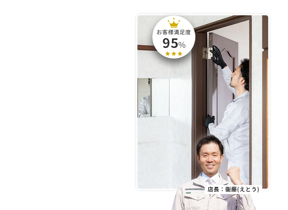 プロならではの的確な施工で、ドアが閉まらない・引っかかる、鍵がかからない、きしみ音や隙間風などの不安を防ぎながら、ドアの使い心地と寿命も大きくのばせます。
