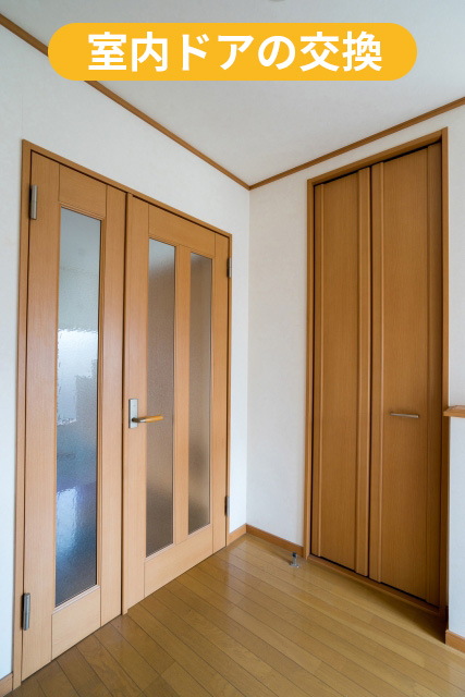丁番のゆるみ調整やラッチの不具合修理といった小さな部分修理はもちろん、ドアノブ・鍵(シリンダー)の交換、建て付け改善、ドア本体や枠の補修・交換まで幅広く対応可能です。