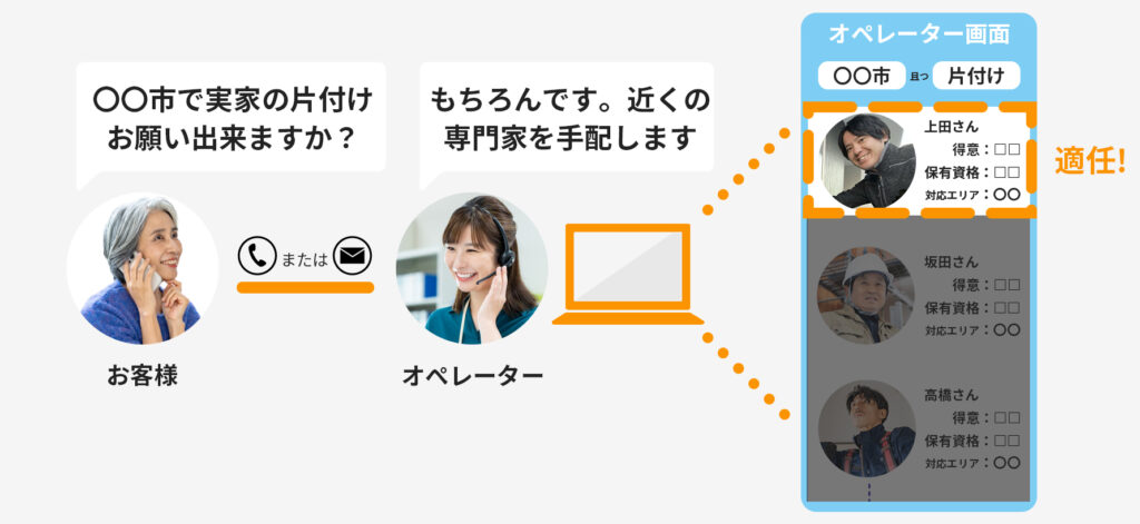 - ①地元で実績のある片付け専門家が対応