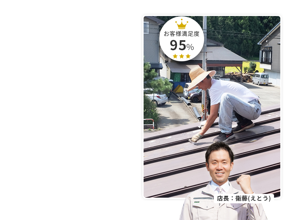 当社では、確かな技術を持つ職人が現場を直接担当し、瓦1枚の補修といった部分工事から屋根ふき替え工事まで幅広く対応。お客様のご予算やご要望に合わせ、現場で柔軟に最適な施工をご提案いたします。安心と納得の屋根修理をお約束いたします。