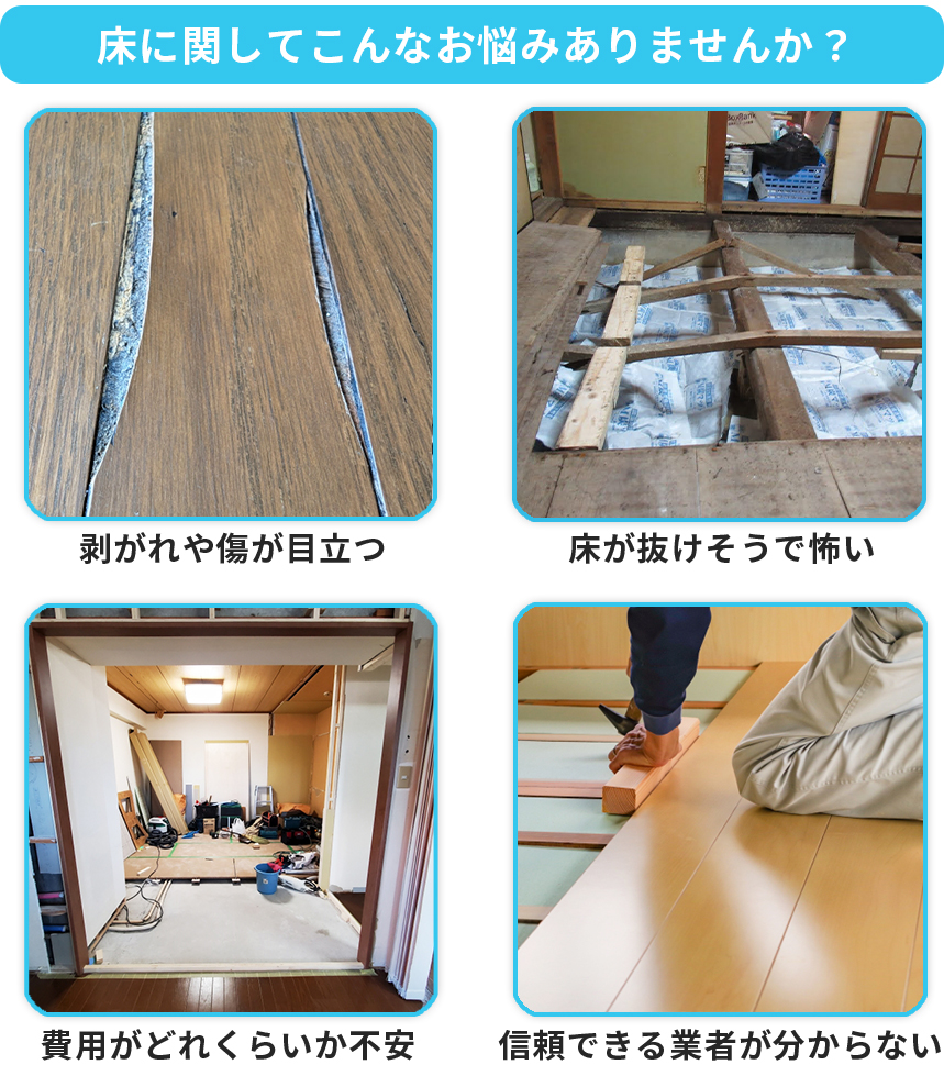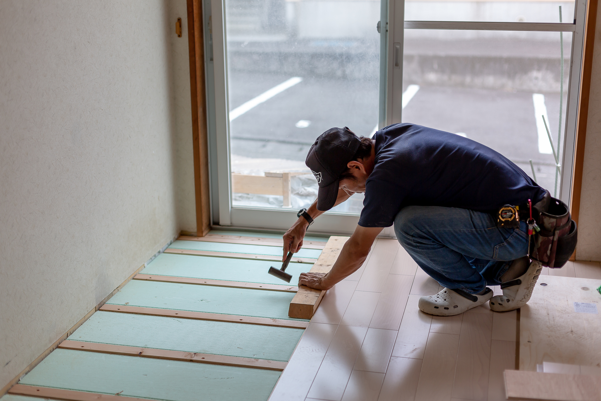 床は毎日歩く場所だからこそ、剥がれや傷、きしみ音などがあると気になってしまうものです。「自分で張り替えてみようかな」と思っても、実際は重労働で、きれいに仕上げるのはとても難しいのが現実です。