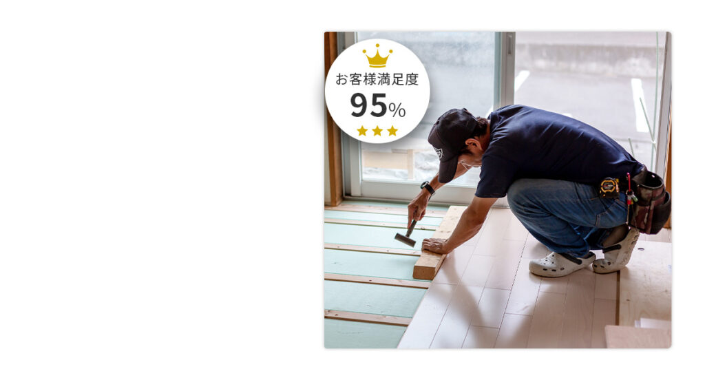 床の張り替えを請け負う業者は数多くありますが、「思った以上に費用がかかった」「工事が長引いて生活に支障が出た」といった不安や不満の声も少なくありません。私たちは、経験豊富な職人を直接派遣し、余計な中間コストを省くことで適正価格を実現。さらに、最短1日で完了といったスピード対応で、日常生活への影響を最小限に抑えます。安心・丁寧な施工で、見た目の美しさはもちろん、長く快適に使える床をご提供いたします。